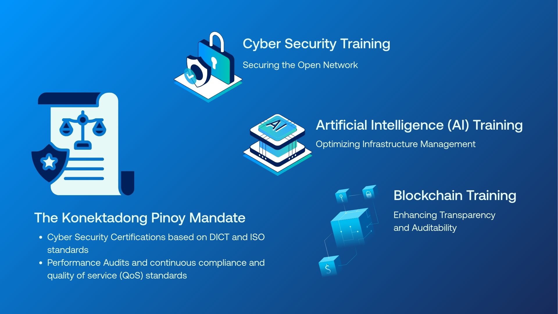 The Konektadong Pinoy Act is more than a policy update; it's a structural reset. Companies that strategically invest in advanced digital skilling — specifically Cyber Security Training, AI and ML training, and Blockchain training. View our public schedule for ICT courses.