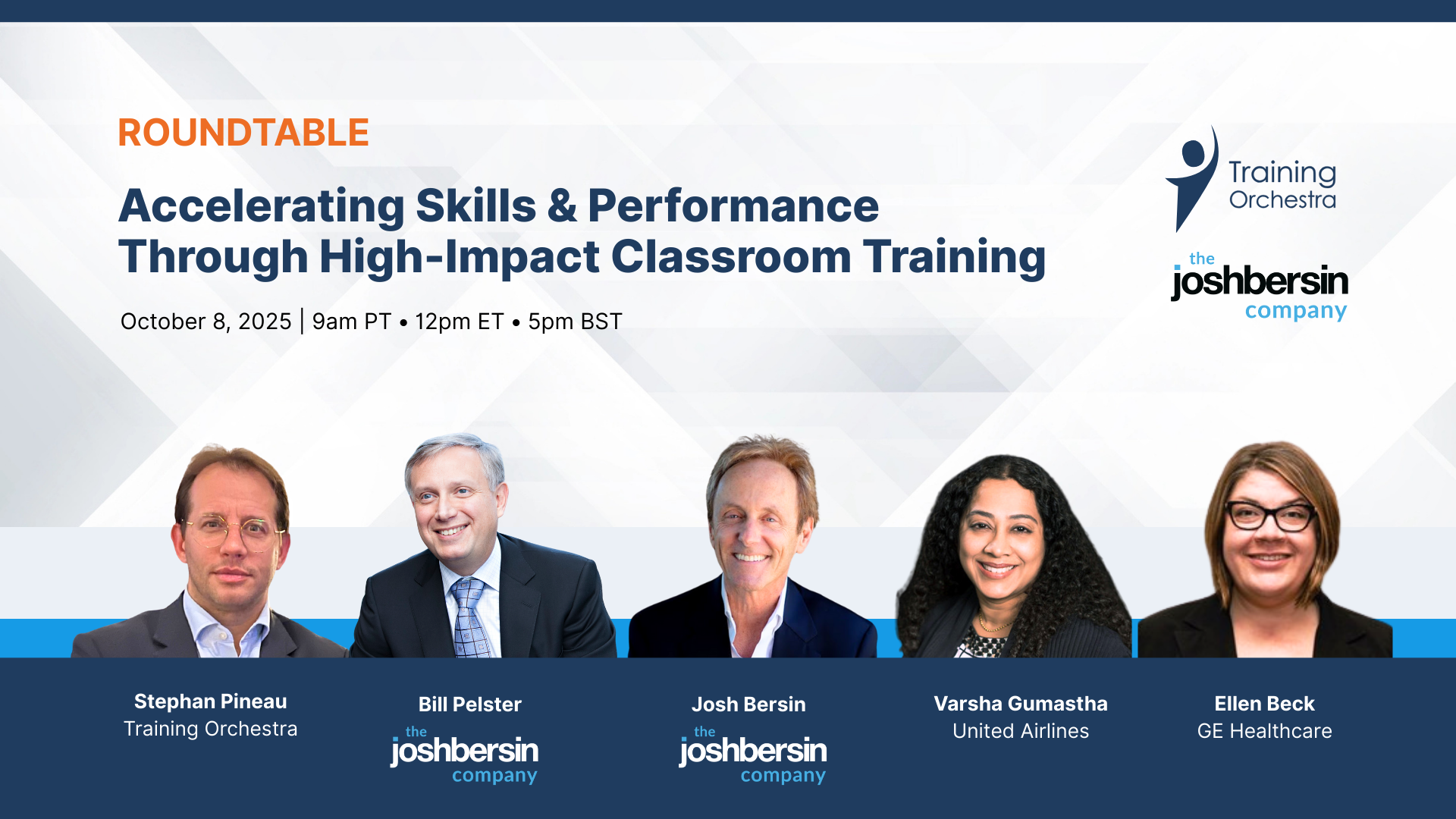 To explore how global companies are innovating around classroom training, Josh Bersin will convene a roundtable with learning leaders from United Airlines, GE Healthcare and Training Orchestra.